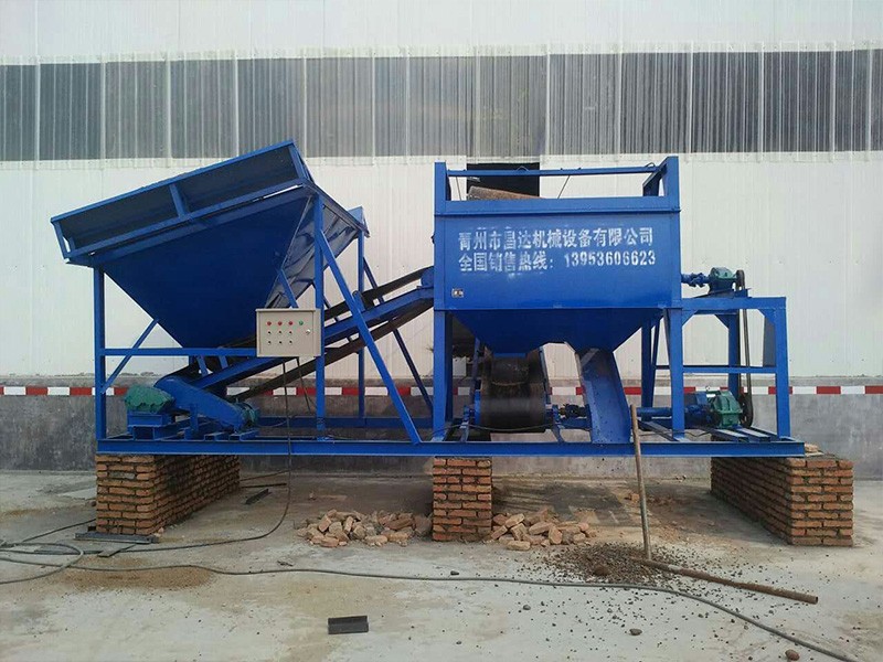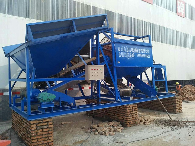 整個設備由原料儲料斗、原料供料皮帶機、平置篩網(wǎng)、成品砂堆料皮帶、棄石出料槽等組成,設備通電運轉后由裝載機將原料裝入大容量儲料斗,原料經(jīng)由供料皮帶投入到平置篩筒,旋轉的篩筒帶動原料在筒內葉片的推擠、翻滾下形成原料在篩網(wǎng)面滑滾的人工篩砂效果,篩出的成品砂通過集料斗落在成品砂皮帶上,同時被皮帶提升落下呈成品料堆、或直接落入儲料斗,整個過程連續(xù)且物料分級清楚。