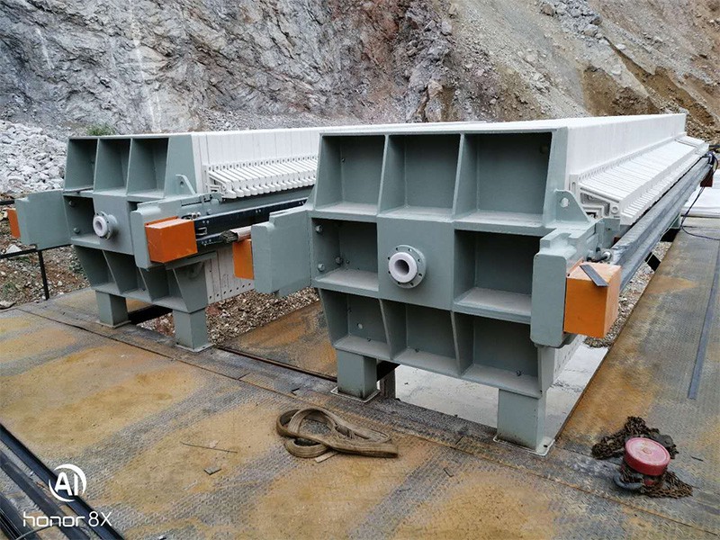 液壓壓緊板框式壓濾機由主機(機架和濾室)、液壓部件和電氣等部分組成。